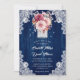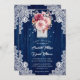 Invitation Mariage floral marine bleu et blanc bois mason jar
