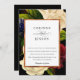 Belle peinture vintage d'inspiration audacieuse fleurs de jardin et feuillage en marine, rouge et crème sur arrière - plan noir moody. L'invitation présente un cadre central branché avec un accent cuivre.