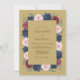 Des roses profondes bleu marine et bordeaux ancrent une bordure luxuriante sur un fond doré saisissant. Des accents de rose blush doux et de verdure délicate ajoutent une touche de romance à la palette sombre. Cet arrangement botanique à l'aquarelle évoque un sentiment d'élégance formelle, parfait pour un événement sophistiqué d'hiver ou d'automne.