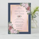 Invitation Mariage floral or bleu bleu marine moderne