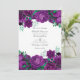 Faire-part de mariage fleurie violette et verte à l'eau. Idéal pour un thème ou un mariage de jardin. Le code QR au verso dirige vers votre site mariage où les gens peuvent en savoir plus et rsvp.