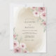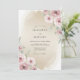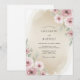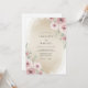Ce design présente un lavis d'aquarelle délicat dans des tons de sable doux associé à des roses roses romantiques et au feuillage vert sauge. L'esthétique éthérée crée une ambiance sereine et élégante, parfaite pour un événement printanier. De luxuriantes illustrations botaniques de roses en fleurs et d'accents feuillus offrent une beauté naturelle et intemporelle.