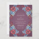 Ce design évoque une humeur riche et romantique avec des teintes de prune profondes et des accents floraux dramatiques. Des roses luxuriantes aux nuances de cramoisi et des hortensias bleus doux créent un étalage élégant et pictural. Parfait pour une célébration sophistiquée.