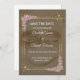 Annoncez votre journée spéciale avec style avec ce faire-part de mariage romantique "Save the Date". Doté d'un arrière - plan brun chaleureux, de fleurs roses délicates et d'élégants détails de cadre doré, ce design donne le ton d'une célébration intemporelle et chaleureuse. Personnalisez avec vos noms, votre date et votre emplacement.
