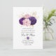 Élégant faire-part de mariage de fleurs rose et violet avec des accents de feuille d'or faux et un retour calligraphique vintage personnalisable selon vos spécificités d'événement.