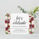 Célébrons, carte d'invitation de réception de mariage en fuite. Cette carte d'invitation sur le thème de la réception de mariage en fuite floral rose Marsala est parfaite pour votre réception de mariage / fête de célébration. Ajoutez vos détails dans une police / lettrage noir assorti.