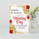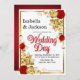 Invitation Mariage Floral Rose Rouge Et Or