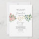 Invitation de mariage bohème élégante moderne avec cœur de corde dorée, roses aquarelles et calligraphie simple.