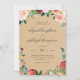 Invitations de mariage rustiques à fleurs d'aquarelle dans les tons bordeaux et roses rousses avec une belle verdure contre un arrière - plan Kraft. Parfait pour les mariages de campagne, de plein air, de jardin, de printemps ou d'été.