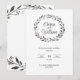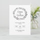 Carte d'invitation élégante pour mariage avec décoration de couronne dessinée. Nom et date écrits, adresse du lieu, modifiables.