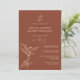 Cette élégante invitation de mariage moderne est parfaite pour les saisons estivales et printanières. Elle présente des illustrations de fleurs et de feuilles avec une typographie simple. La palette de couleurs comprend un brun terracotta foncé et un beige crémeux. C'est contemporain, bohème, rustique et simple, le design parfait pour impressionner vos invités.