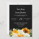 Invitation Mariage floral tournesol et rose blanche - Noir
