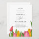 Éclairez votre journée de mariage avec cette élégante invitation à la floraison tulipe, conçue pour les fêtes du printemps et du jardin. Doté de délicates tulipes à aquarelle dans des tons pastel romantiques, ce design ajoute une touche fraîche et intemporelle à votre événement. Sur le dos, personnalisez-le avec votre propre photo et un code QR scannable - parfait pour lier à votre site Web mariage, formulaire RSVP, ou registre de cadeaux. Un beau mélange de tradition et de technologie, idéal pour les couples qui souhaitent organiser un mariage fleuri, en plein air ou au printemps.