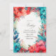 Ajoutez un éclat de couleur à votre journée spéciale avec ce faire-part de mariage étonnant qui présente des fleurs turquoise et coralliennes éclatantes entourées d'une végétation luxuriante. Parfait pour les mariages avec un thème tropical, bohème ou romantique vibrant. Entièrement personnalisable pour répondre aux détails de votre mariage.
