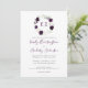 Ce design mariage présente les initiales monogrammes de la mariée et du marié en violet foncé encadré d'une couronne d'aquarelle de fleurs rousses et violettes et de feuillage vert. Personnalisez le texte avec les noms du couple dans un élégant script d'écriture violette et les détails mariages en gris fusain. L'envers est une solide teinte de violet.