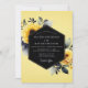 Créez une atmosphère audacieuse et artistique avec ce design saisissant. Un fond jaune vibrant crée une scène brillante pour les chrysanthèmes dorés luxuriants. Ces fleurs éclatantes sont magnifiquement contrastées par des feuilles charbon et bleues foncées, peintes avec un effet aquarelle doux pour une déclaration botanique moderne.