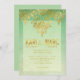 Une élégante invitation de mariage mettant en scène un motif Art déco de parties scintillant imitation dentelle de fibre d'or fleurit contre un arrière - plan vert menthe à l'ombre. Personnalisez ces invitations de style Gatsby à l'aide du bouton PERSONNALISER IT. Pour ajouter du glamour, choisissez le papier Luxe Pearl Shimmer. Produits correspondants disponibles: invitations de mariage, RSVPs, sauver les dates, autocollants, koozie à bière peuvent refroidir, timbres-poste et serviettes de cocktail. Tous mes produits peuvent être personnalisés pour répondre à vos besoins spécifiques. Pour toute question, pour d'autres articles présentant ce design ou pour les enveloppes revêtues de feuilles d'or, veuillez contacter le concepteur :cheryl@cheryldanielsart.com. "Gatsby Parties scintillant Flourish" de Cheryl Daniels © 2015.