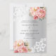 Pour une mariage élégante et romantique. Un arrière - plan à l'aspect faux argent décoré de fleurs d'or rose et rose, de dentelle rose et blanche. Personnalisez et ajoutez vos noms et détails.
