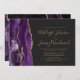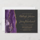 Le bord gauche de cette élégante faire-part de mariage moderne est orné d'une bordure d'aquarelle violette ornée d'une parties scintillant en faux or. Le texte personnalisable combine écriture manuscrite couleur or, cuivre et polices italiques sur un arrière - plan gris fusain foncé. L'envers est assorti d'une agate violette et dorée.