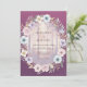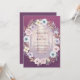 Ce design présente un fond prune lunatique qui donne une tonalité éthérée à une fantaisiste cérémonie de mariage en forêt. Un arrangement artistique de roses blush douces, d'anémones bleu pâle et de verdure délicate entoure une scène boisée brumeuse. La palette combine des tons de baies profondes avec des accents pastel pour une esthétique romantique et inspirée de la nature.