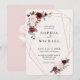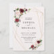 Invitation Mariage Forme Géométrique Dorée Fleurs Rose et Vin