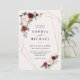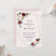 Élégant et rustique, le rose blush et les fleurs de vin de Bourgogne et la forme géométrique dorée encadrent le faire-part de mariage. Le dos de l'invitation est un rose blush recouvrant un rose uni. Vos invités adoreront ce design unique. Articles assortis dans cette collection.