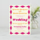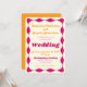 Amusant et branché, cet impressionnant faire-part de mariage rose et or chaud présente un style rétro seventies et une pop moderne. Une bordure ondulée unique encadre la typographie courbée. Vibes de saumons boho brillantes pour votre mariage les années 70 fabuleux. Design : Jeannie Couleurs : Hot Pink, Pink et Gold Toutes les couleurs et le texte peuvent être customisés dans l'outil de conception.