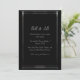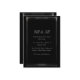 Faites une déclaration audacieuse avec ce "Faire-part de mariage noir Art déco avec bordure géométrique argent". Doté d'un arrière - plan noir profond et d'élégantes lignes argentées inspirées du style art déco vintage, ce design exhale un luxe intemporel et un raffinement moderne. Parfait pour les célébrations officielles en mariage, en cravates noires ou en Gatsby, l'agencement élégant met en valeur vos détails mariages en écriture gris poli. Entièrement personnalisable pour convenir à votre vision événementielle unique.
