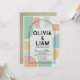 Définissez le ton de votre célébration unique avec cette invitation de mariage géométrique moderne de milieu de siècle qui attire l'œil. Avec une palette vibrante mais sophistiquée de vert menthe, de pêche douce et de jaune moutarde, ce design allie l'inspiration rétro à une touche contemporaine. La mise en page met en valeur des formes abstraites audacieuses et un cadre à double arche saisissant qui met élégamment en valeur vos noms et les détails de l'événement.