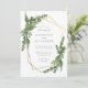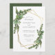 faire-part de mariage d'été chic avec une aquarelle de verdure botanique et un cadre géométrique faux or avec une typographie design et moderne exposant vos détails. Cette invitation revient à un arrière - plan vert foncé avec un délicat motif botanique.