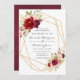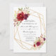 Faire-part de mariage rose vif et bordeaux (marsala) avec cadre géométrique parties scintillant or conçu pour être rapidement et facilement customisé aux détails de votre événement.