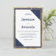 Ce luxueux Faire-part de mariage géométrique marine bleu, blanc et or parties scintillant confetti frontière est inspiré par la simple et élégante a été mais avec des touches subtiles d'influence moderne. Il présente une parties scintillant brillante bleu marine et or sur un arrière - plan blanc. Ce design classique et luxueux fera le bonheur de tous les clients. Tous les dessins sont imprimés.