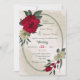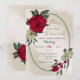 Faire-part de mariage unique avec fleurs romantiques rouges et jaunes pâles et feuilles verts sur un beau cadre géométrique ovale. POUR PLUS DE PRODUITS CORRESPONDANTS cliquez sur la collection ci-dessus ou contactez-moi.