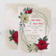Faire-part de mariage unique avec fleurs romantiques rouges et jaunes pâles et feuilles verts sur un beau cadre géométrique. POUR PLUS DE PRODUITS CORRESPONDANTS cliquez sur la collection ci-dessus ou contactez-moi.