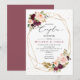 Invitation Mariage Géométrique Doré Bouquet Bordeaux et Rose