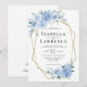 Invitation Mariage géométrique Dusty Blue Light Floral Gold
