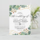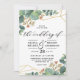 Il s'agit d'une belle faire-part de mariage avec fleur d'eucalyptus à la forme géométrique or.