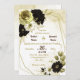 Belle faire-part de mariage botanique avec des fleurs brunes, blanches en ivoire et dorées avec des feuilles dorés sur un cadre géométrique doré. Les détails de la parties scintillant d'or sont simulés. Il convient aussi bien aux invitations mariages qu'aux fiançailles. POUR PLUS DE PRODUITS CORRESPONDANTS cliquez sur la collection ci-dessus ou contactez-moi.