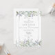 Une élégante invitation à un mariage avec de jolis feuilles sauge et lilas qui tombent sur un cadre argenté élégant renfermant vos détails mariages ensemble dans un texte classique élégant. Conçu par Thisisnotme©