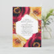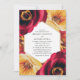 Cette invitation de mariage audacieuse et élégante présente des fleurs rouges et jaunes vibrantes encadrant un hexagone géométrique doré moderne. L'arrière - plan blanc cassé dans le cadre met en valeur le design floral saisissant, ce qui en fait un endroit idéal pour les couples qui souhaitent mêler élégance classique et modernité. Cette invitation donne un ton sophistiqué à un mariage plein de style et de personnalité.