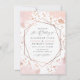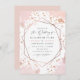 Invitation de mariage tendance avec éclaboussures d'aquarelle et un cadre géométrique rose gold et un revers rose blush.