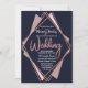 Elégant, chic et moderne avec une ambiance rétro, imitation rose en or géométrique forme diamant contour sur bleu marine, mauve, et rose rousse découpe diamant, invitations de mariage. Ce design classique et sophistiqué est parfait pour le couple marié branché et élégant. Personnalisez avec votre propre message sur l'avant ainsi qu'avec un premier monogramme customisé sur l'arrière. Toute la conception d'impression photo.