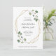 Ces minimaliste et faire-part de mariage à la mode comporte le feuille et le feuillage romantiques d'eucalyptus d'aquarelle sur un cadre central géométrique d'or de faux. Il y a un espace He basent avec l'option pour ajouter votre site Web de mariage. Un simple pourtant la stupéfaction recherche votre mariage moderne.
