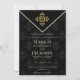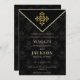 Elégant et élégant Faire-part de mariage Soirée Chic sur un arrière - plan noir à motifs avec un emblème d'or.