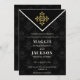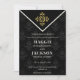 Elégant et élégant Faire-part de mariage Soirée Chic sur un arrière - plan noir à motifs avec un emblème d'or.