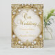 Invitation Mariage Gold Blanc crème perles Cadre ovale