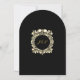 Cette invitation de mariage gothique à crânes voûtés noir et or 'jusqu'à ce que la mort nous sépare' peut être personnalisée avec vos informations en typographie élégante et monogramme initial au verso. Conçue par Thisisnotme©