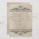 Faire-part de mariage élégante et chic Elegant Déco avec une paire de bordures de couleur gris tourbillon art déco et un look vintage arrière - plan dans un beige doux. Cet invitation possède un charme rustique tout en conservant une agréable atmosphère sophistiquée. Parfait pour un mariage à thème vintage art déco des années 1920. Facile à customiser, il suffit d'ajouter les détails de votre mariage dans les champs de texte fournis. Cliquez sur "Customiser" pour trouver d'autres options de personnalisation comme changer de polices ou de couleurs de texte.