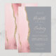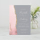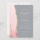 Le bord gauche de cette élégante faire-part de mariage moderne est orné d'une bordure en aquarelle rose vif et recouverte d'une parties scintillant en faux or. Le texte personnalisable combine écriture manuscrite, copperplate et polices italiques en clair pâle sur un arrière - plan gris. L'envers est assorti d'un design d'agate en blush et or.