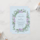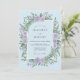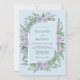 Cette conception présente une disposition aquarelle luxuriante de roses lavande et de fougères vertes vibrantes sur un fond bleu poudre doux. Les éléments botaniques créent une atmosphère sereine et romantique, parfaite pour un événement forestier printanier. La palette de couleurs combine des pastels frais avec des verts feuillus riches pour une esthétique gracieuse.